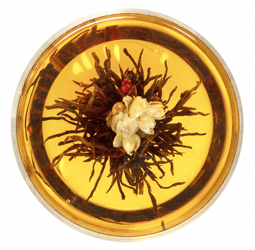 Черный связанный чай из провинции Фуцзянь. В этот элитарный образец вплетены цветы жасмина и лилии. Они придают черному чаю, его медовому и солодовому вкусу, цветочность и легкость. Настоящий представитель высокого искусства изготовления связанного чая.