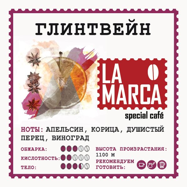Глинтвейн в дословном переводе «пылающее вино». Этот кофе по настоящему согревающий, обладает насыщенным пьянящим ароматом специй (гвоздика, корица, мускат), сухофруктов и меда. Имеет насыщенное тело и приятную фруктовую кислинку. Отлично подходит для зимних посиделок в уютной компании.