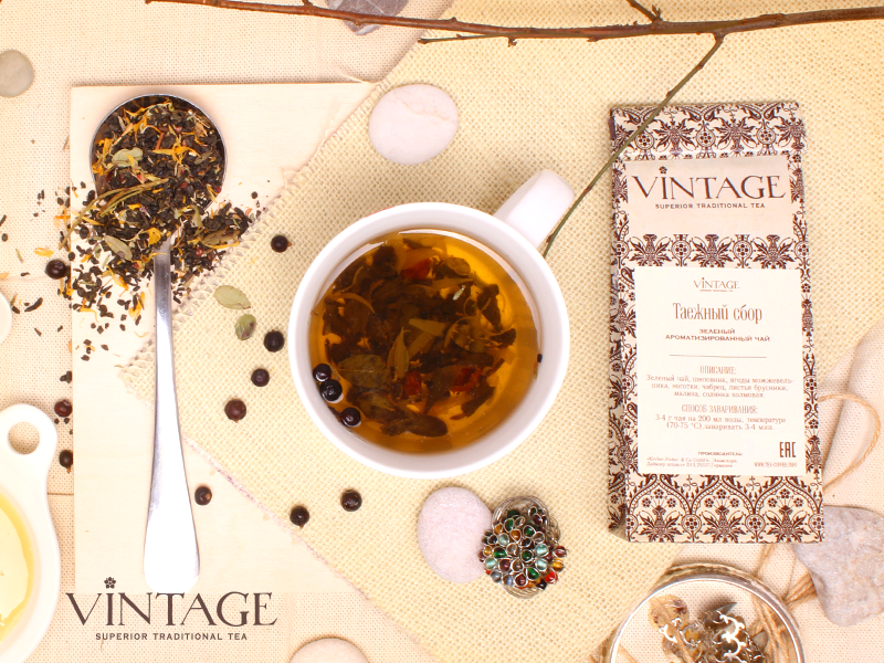 зеленый чай, ягоды можжевельника, шиповник, ноготки, чабрец, лист брусники, малина, солянка холмовая